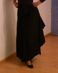 Satinmasche verziert, versteckter Unterrockvolant (siehe oben), bei obersten
